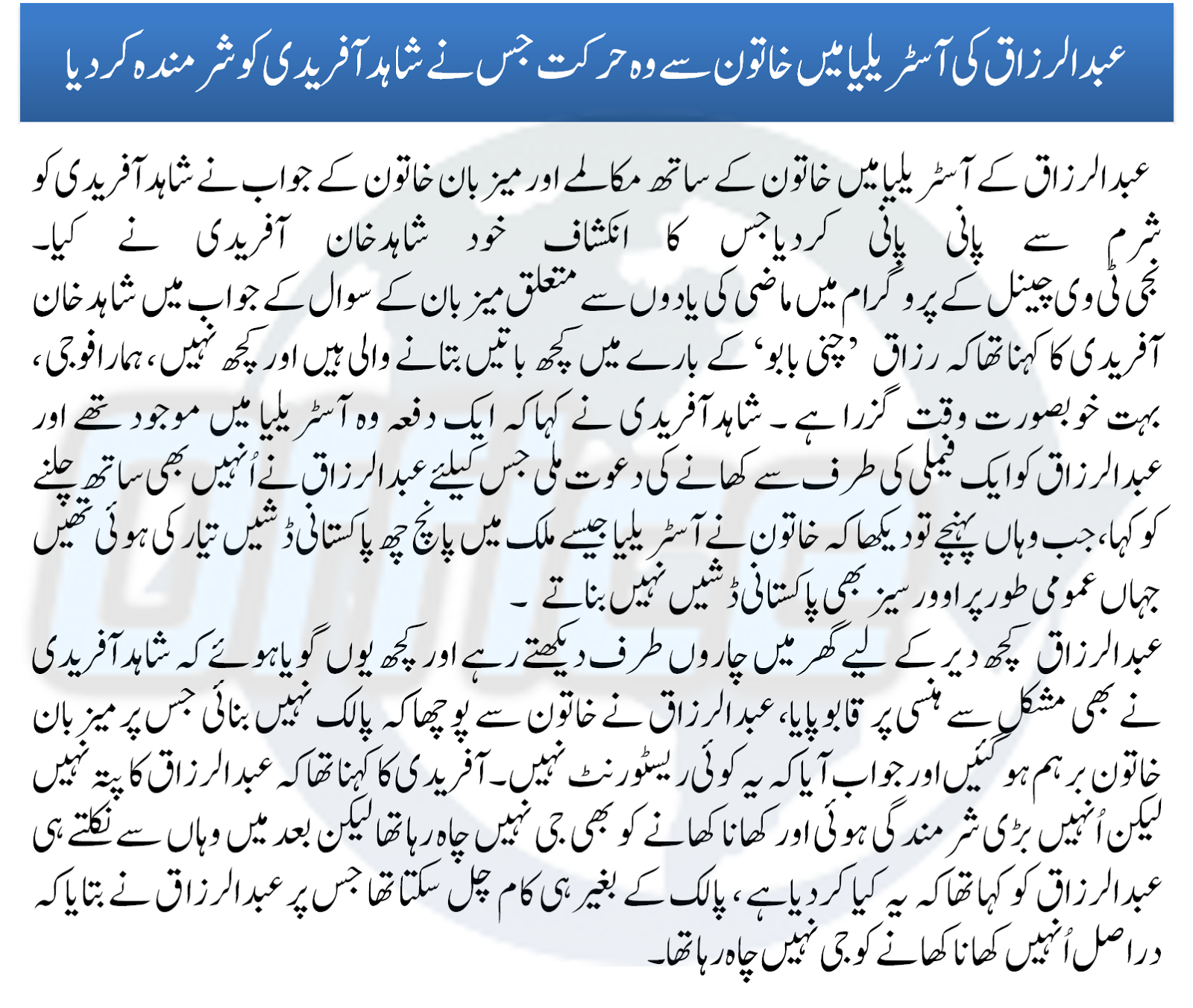 Shahid Afridi Telling Interesting Story Of Abdul Razzaq and Australian Lady