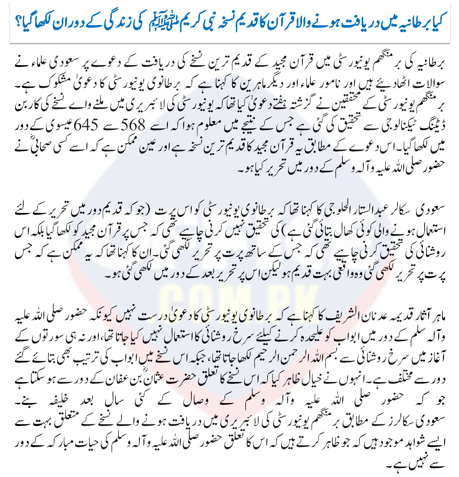 Noticed any mistakes in Was the manuscript discovered in the UK was written during the life of the Holy Prophet Muhammad (S.A.W.W)? Help us keep things accurate! Simply click the “Report Mistake(s) in Notes” button above, and we’ll correct it right away. Your feedback makes a difference!